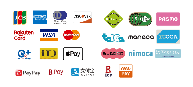 ご利用いただけるQR決済:楽天Pay・auPAY・PayPay・id・ApplePay・各種交通系決済等利用いただけます